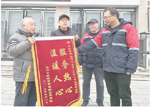 中環(huán)寰慧(焦作)熱力有限公司第二供熱所工作人員殷建華在為小區(qū)供熱管網(wǎng)維護(hù)中任勞任怨,處處為居民著想,受到居民的一致好評。焦作日報(bào)社西家屬院居民代表特向焦作公司第二供熱所送達(dá)錦旗一面,贊揚(yáng)熱力公司“服務(wù)熱心、溫暖人心”!
