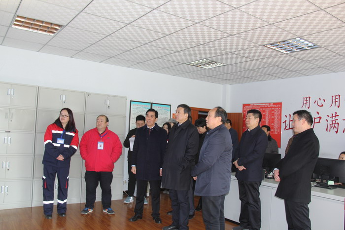 春節(jié)來臨,焦作市市委市政府領(lǐng)導(dǎo)為了節(jié)日期間保民生,保供暖,高度重視春節(jié)期間供暖工作。于2月12日上午市委書記王小平親臨焦作市綠源公司慰問和視察,集團(tuán)副總裁兼綠源公司總經(jīng)理盧躍進(jìn)代表公司向市領(lǐng)導(dǎo)做了春節(jié)期間保證供暖的工作匯報。王書記對堅守在工作崗位的員工進(jìn)行了親切的問候,對近幾年來寰慧集團(tuán)對焦作供暖事業(yè)的貢獻(xiàn)給予充分肯定,特別是對當(dāng)前的供暖服務(wù)質(zhì)量和節(jié)日期間的保障措施表示滿意,并對下一步加快發(fā)展速度,提高熱網(wǎng)覆蓋率,以及老舊小區(qū)集中供暖入網(wǎng)補(bǔ)貼等方面提出了指導(dǎo)性意見。他要求綠源公司要克服困難,再接再厲,爭取在2018年度取得更大的突破。同時他還讓盧躍進(jìn)總經(jīng)理轉(zhuǎn)達(dá)他對吳立群董事長的問候。