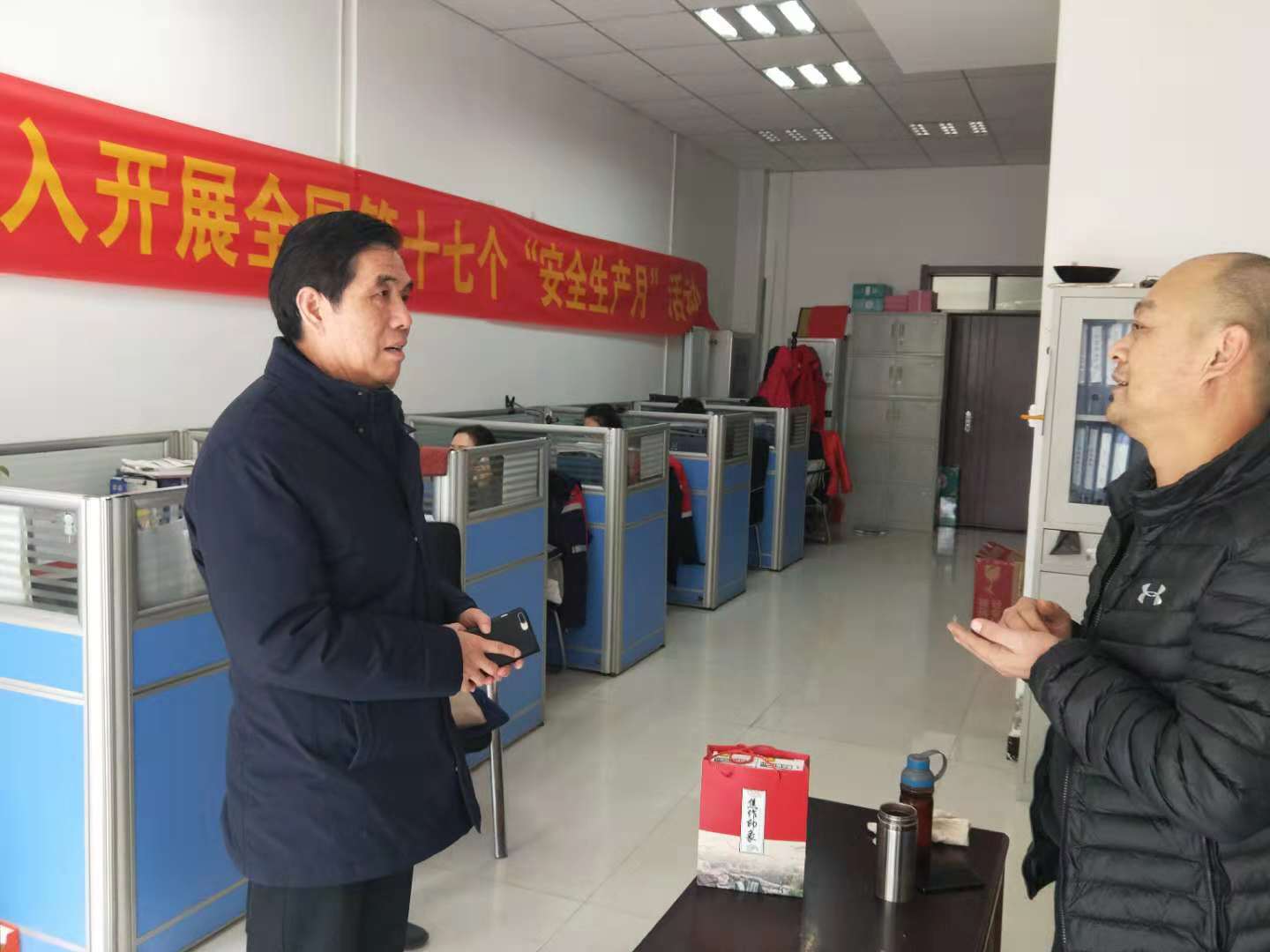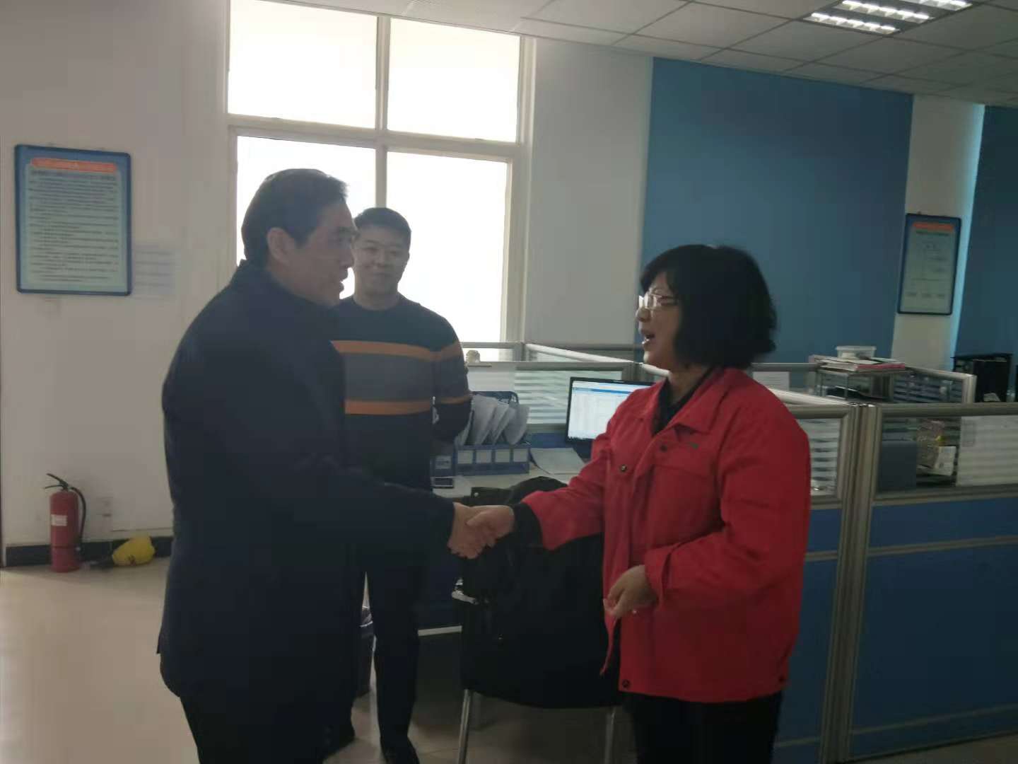 11月15日上午九點(diǎn),焦作公司集中供暖的第一天,總經(jīng)理盧躍進(jìn)、副總工程師郭李霞到焦作市行政服務(wù)中心公司營(yíng)業(yè)窗口、賽納溪谷收費(fèi)大廳、公司營(yíng)業(yè)大廳等營(yíng)業(yè)網(wǎng)點(diǎn)、四個(gè)供熱所辦公地點(diǎn)、用戶發(fā)展中心進(jìn)行慰問,為忙碌的一線員工們送去菊花、護(hù)嗓含片等物品,并對(duì)各營(yíng)業(yè)大廳、供熱所供暖第一天的運(yùn)營(yíng)情況進(jìn)行詢問和了解。當(dāng)了解到一線服務(wù)人員十分緊張的情況后,當(dāng)即對(duì)人員進(jìn)行調(diào)整,要求機(jī)關(guān)人員盡快補(bǔ)充到一線服務(wù)隊(duì)伍中去,及時(shí)為用戶解答、處理供暖中的各種問題,確保高質(zhì)量、高標(biāo)準(zhǔn)為用戶做好供暖服務(wù)。