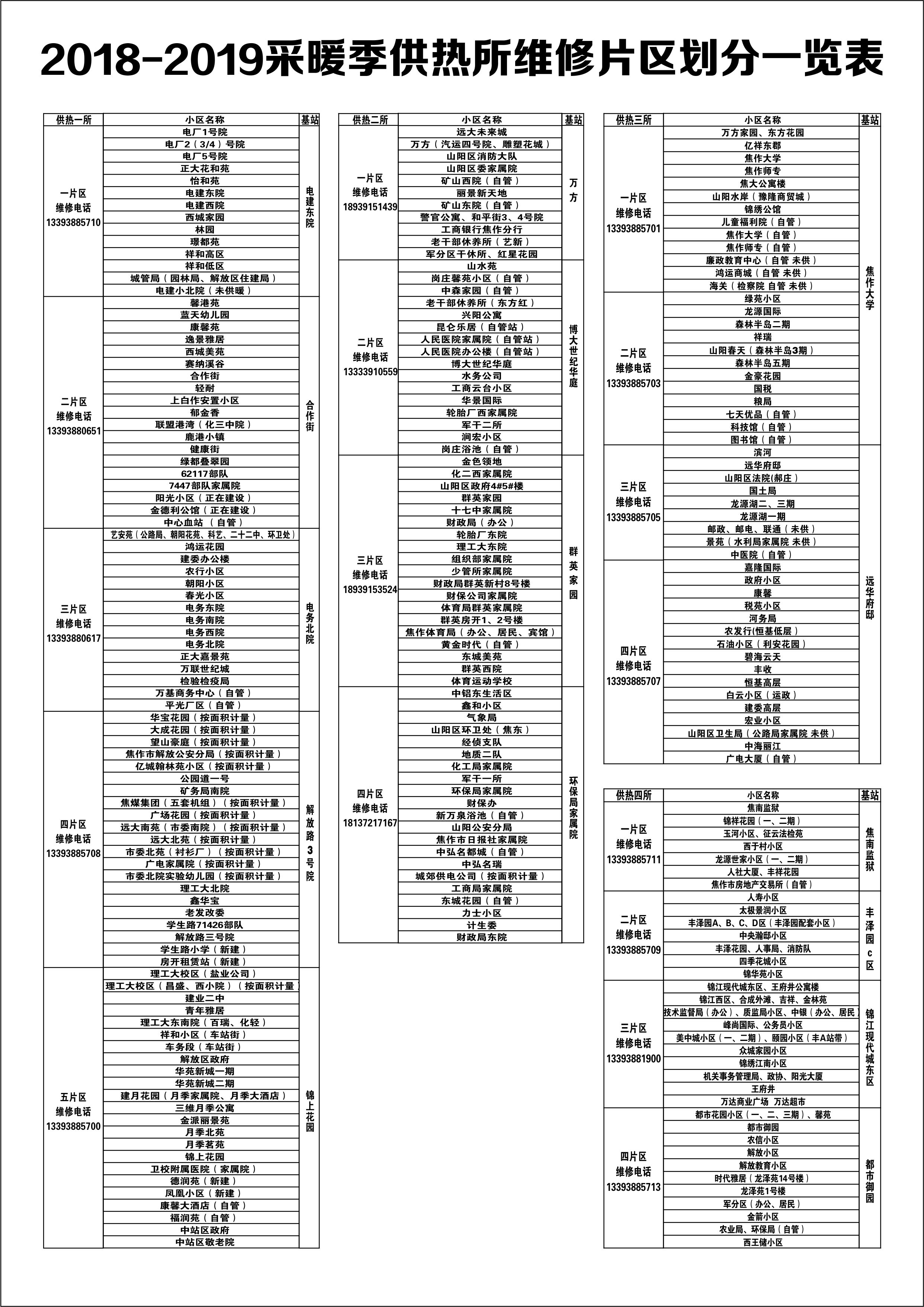 熱力公司再次提醒集中供熱報修電話為3681088、13393880615、18939152421,各片區(qū)維修服務(wù)電話詳見下圖(可點擊放大):
