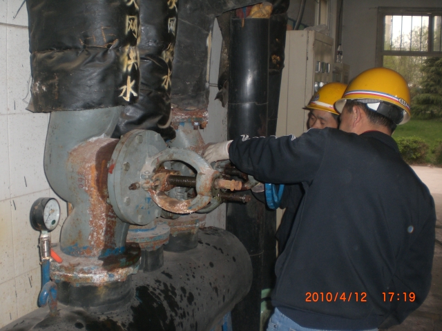 張小倉組4月12日至20日,分別對(duì)農(nóng)發(fā)行換熱站、太極景潤換熱站進(jìn)行了檢修;李虎組4月14日至16日檢修豐收小區(qū)換熱站,4月16日至19日,檢修中國人壽換熱站,截止到4月19日已完成中國人壽換熱站檢修。通過檢修,共需更換18個(gè)大閥門,其中DN150截止閥7個(gè),DN200截止閥8個(gè),DN250截止閥3個(gè)。