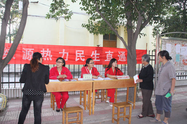 隨著冬季供暖的時間越來越近,綠源公司為今冬供暖正在進行扎實的基礎(chǔ)準(zhǔn)備工作。為配合小區(qū)打壓試水工作,切實為用戶辦好事、辦實事,有效解決居民用熱中遇到的各種問題,廣泛征求群眾對集中供熱的意見和建議,有效改善公司在群眾中的社會形象和影響力,公司民生工作室配合生產(chǎn)科于9月15日組織開展了民生直通車進社區(qū)服務(wù)活動。