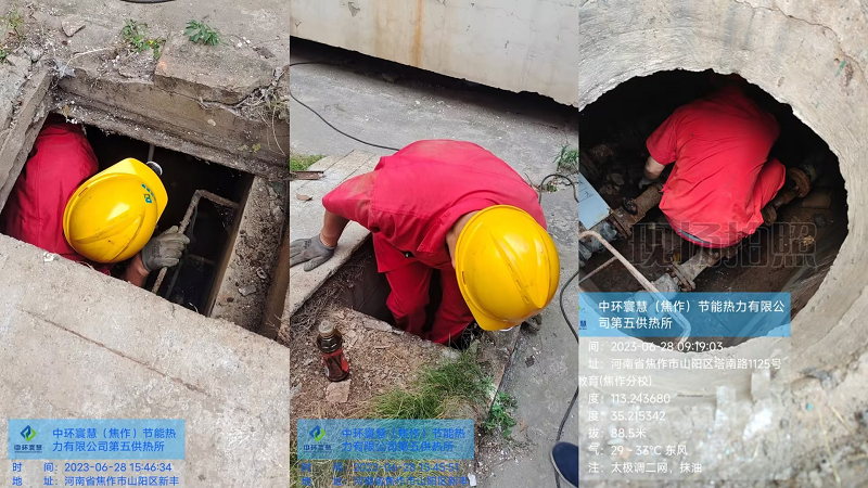炎炎夏日,焦作公司熱力人的工作熱情如同室外的氣溫一樣高漲,各項(xiàng)“冬病夏治”工作都在有條不紊、緊張繁忙的進(jìn)行著。非采暖季的維檢修工作,有一項(xiàng)必不可少的工作就是對(duì)熱力閥門井進(jìn)行檢修,只有確保閥門使用正常,保溫完善,才能為冬季供暖打下基礎(chǔ)。每天都會(huì)有運(yùn)維人員打開熱力井蓋,進(jìn)入分布著熱力管道的井內(nèi)作業(yè)。井下最深處可達(dá)地下四五米,有的井中還有積水,夏日里,本就狹窄黑暗的井內(nèi)更加悶熱潮濕,甚至還夾雜著刺鼻的味道以及蒼蠅蚊子小飛蟲和老鼠,一般人下去別說是下去干活,就是待上幾分鐘也會(huì)汗流浹背,惡臭和悶熱讓人憋得透不過氣來。但供熱人從來無懼嚴(yán)寒酷暑,下井作業(yè)最注重安全,在井下通風(fēng)完畢,氣體檢測(cè)合格后,穿著工作服和安全帽在井里一待就是一個(gè)鐘頭。淺一些的井內(nèi)空間狹小,連彎腰都很困難,為了更換閥門,只能半蹲在里面,切割、焊接,一個(gè)作業(yè)流程下來,貼身衣服全部濕透,腰也累得直不起來了。有時(shí)候幾個(gè)檢修工輪流下井,輪換作業(yè),其中付出的艱辛,只有親歷者才有體會(huì)。