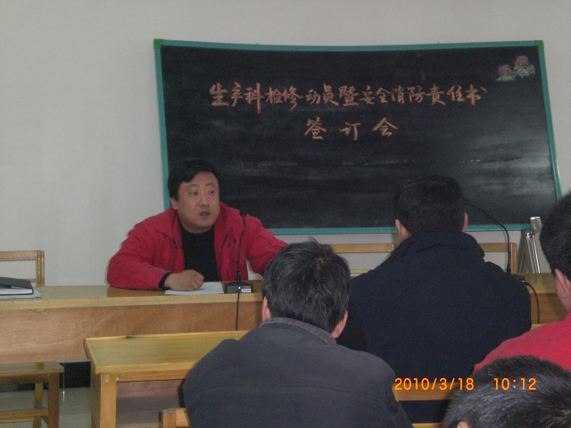 3月18日上午,綠源熱力公司生產(chǎn)科在公司二樓會議室組織一線職工召開了2010年非采暖季檢修動(dòng)員暨安全消防責(zé)任書簽訂會,會后又安排專人,對一線職工進(jìn)行了為期一天的消防安全、技術(shù)培訓(xùn)。貫徹落實(shí)消防安全會議精神,增強(qiáng)一線員工的安全意識、提高工作技能,為即將對到來的緊張而又繁忙的的非采暖季檢修工作做好充分準(zhǔn)備。