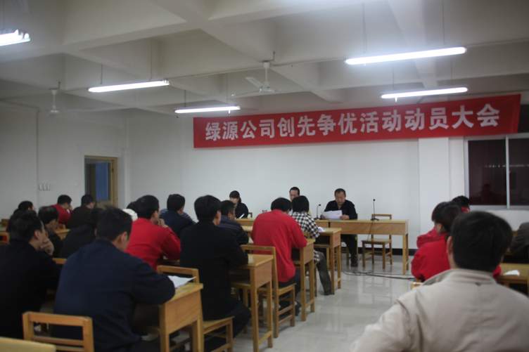 2010年5月17日上午8點,綠源公司在公司二樓會議室組織全廠職工召開了“綠源公司創(chuàng)先爭優(yōu)活動動員大會”,會議按照市建委黨組焦建發(fā)[2010]12號文件精神和工作部署,決定從即日起在公司黨支部和黨員中開展“五比一爭”創(chuàng)先爭優(yōu)活動,即比學習、比黨性、比服務、比創(chuàng)新、比業(yè)績、爭先進。會議由書記金凱主持,公司總經理張智出席了會議,全廠正式職工53人全部按時到會。