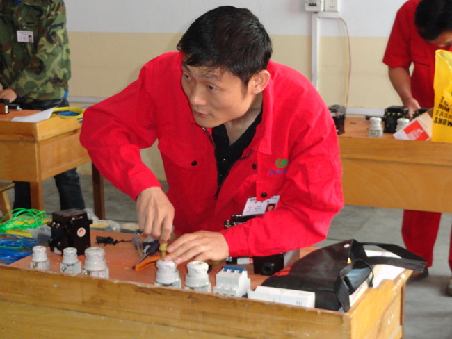 圖為維修電工劉龍濤參賽現(xiàn)場