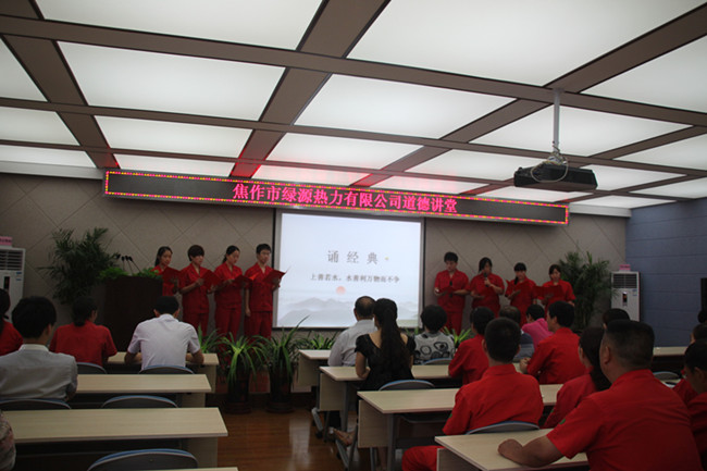 為深入貫徹黨的十八大精神,大力弘揚(yáng)中華民族傳統(tǒng)美德,進(jìn)一步加強(qiáng)職工的思想道德建設(shè),根據(jù)上級指示精神,綠源熱力有限公司于2013年7月6日上午8:30在公司二樓會議室開展了一次“道德講堂”活動。