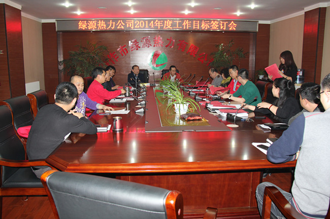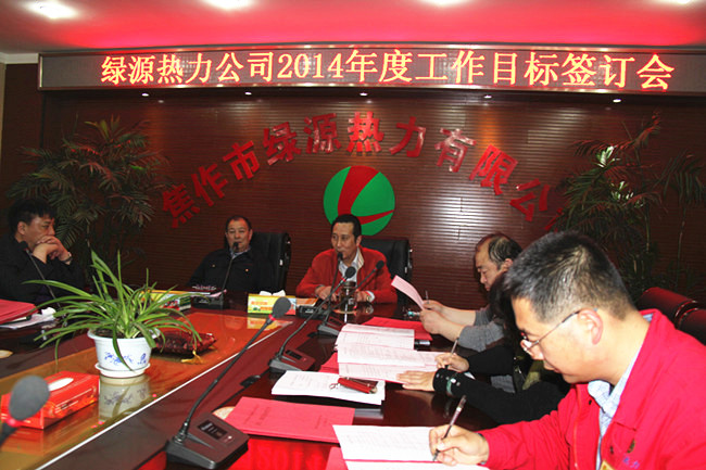 扎實(shí)推進(jìn)各項(xiàng)工作,圓滿完成2014年各項(xiàng)目標(biāo),2014年3月14日晚,焦作市綠源熱力有限公司在公司三樓會(huì)議室舉行了工作責(zé)任目標(biāo)簽訂儀式,公司總經(jīng)理張智和書記金凱分別與公司各部門簽訂了各項(xiàng)工作、安全消防、廉政建設(shè)和計(jì)劃生育等方面責(zé)任目標(biāo)書,針對(duì)各項(xiàng)工作責(zé)任目標(biāo)進(jìn)行了全面的落實(shí)。